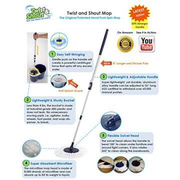 Twist and Shout Mop - Award Winning Original Hand Push Spin Mop with 2 Microfiber Mopheads