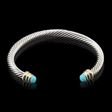 While there are various cuff bracelets available in the market, our Twisted Cable Bracelet stands out due to its combination of unique design and quality materials. Unlike many other bracelets, our use of plated brass alloy ensures that the bracelet is not only visually captivating but also durable and wear-resistant. The thoughtful inclusion of allergy-free materials further sets it apart, ensuring that it is suitable for everyone, while many competitors often overlook this important factor. The stunning gemstone choices allow for customization that many generic bracelets simply can't offer, making it a better choice for those who want personalized elegance.