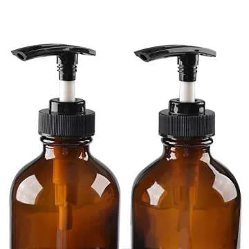 Two Amber Glass Bottle Bottles with Plastic Pump. Eco-friendly 8oz 8 oz Refillable Bottle for Cooking Sauces,Essential Oils,Lotions,Organic Beauty Products(Two Chalkboard Labels free)