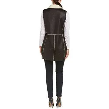 Two by Vince Camuto Women's Shearling Pleather Exposed Seam Vest - Rich Black