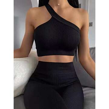 Show more Introducing the Two Piece Workout Sets for Women – the ultimate blend of style, comfort, and functionality. This remarkable ensemble features a sexy one-shoulder crop tank top and high waist ribbed seamless shorts, designed to enhance your workout experience while keeping you fashionable.
