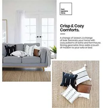 Two Queens Lane 4-Pack Boho Throw Pillow Cover and Case for Couch, Sofa or Bed, Geometric, Modern Decor Design, 100% Cotton, 18 x 18 Inch, Sonoma Set