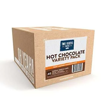Two Rivers Coffee Hot Chocolate Pods Single Serve Cocoa Variety Sampler Pack Compatible with 2.0 Keurig K-Cup Brewers, 40 Count