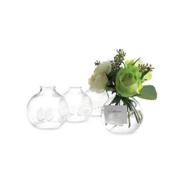 Two's Company Be Seated Bud Vases/Place Card Holder in Gift Box, Hand Blown Glass, Set of 4
