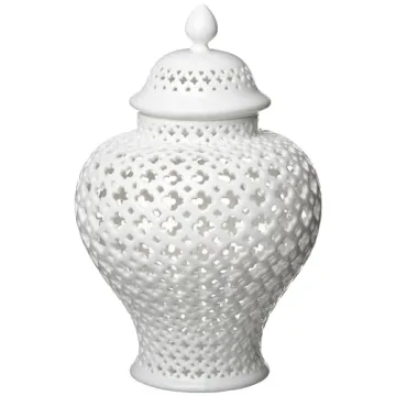 Show moreIntroducing the Two's Company Carthage Medium Pierced Covered Candle Lantern Decor, an exquisite fusion of elegance and functionality crafted from premium quality porcelain. With its unique Asian-inspired shape and a stunning quatrefoil design, this decorative lantern is more than just a piece of decor; it is a statement of style that enhances the ambiance of any space. The sophisticated white finish and intricate pierced pattern not only illuminate your surroundings with a warm glow but also add a touch of class to your indoor and outdoor settings. Perfect for collectors and those who appreciate tasteful aesthetics!