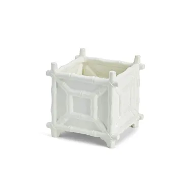 Two's Company Faux Bamboo Cachepot - Elegant White Ceramic 7.75-Inch Planter
