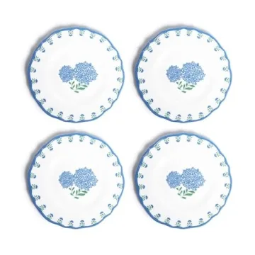 Two's Company Hydrangea Melamine Plates - Colorful Salad & Dessert Dinnerware, Non-BPA Dishwasher Safe, Durable Outdoor Plates for Parties & Picnics - Set of 4