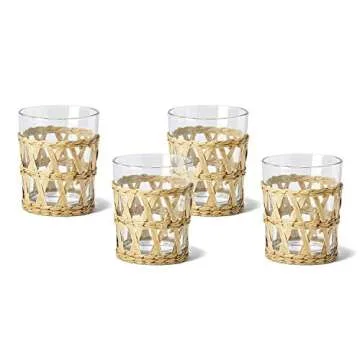 Show moreIntroducing the Two's Company Island Chic Drinking Glass set, a stunning collection that combines elegance and utility across 24 beautifully crafted pieces, including 13.5 oz. highball glasses and 8 oz. double old-fashioned glasses. Each glass features an exquisite hand-woven lattice sleeve that not only enhances the aesthetic appeal but also provides a unique tactile experience. Perfect for entertaining guests or enjoying your favorite beverage, this glass set is designed for style, functionality, and ease of care with removable sleeves for effortless cleaning. The use of glass and durable paper yarn ensures that you enjoy the charm of chic decor in your dining experience without compromising on practicality.