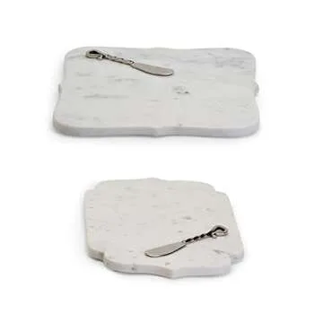 Two's Company Marble Arabesque Serving Tray with Cheese Spreader Set, Assorted of 2 Designs