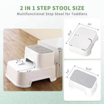 Two Step Stool for Kids, Double up Baby Child Toddler Stepping Stool for Potty Training,Bathroom Sink,Kitchen,Toilet Stool with Anti-Slip Strips for Safety, Stackable, Wide Step (2 Packs White)