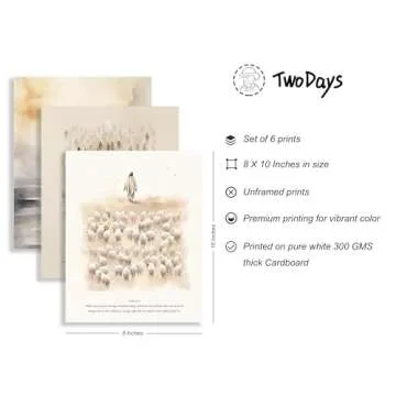 Introducing the TwoDays Christian Wall Art Set, a stunning collection of six captivating prints that beautifully convey timeless Bible stories in a striking, minimalist boho design. Each 8x10 inch piece, printed on premium 300 GMS museum-quality cardboard, provides a refined touch to your home decor while inspiring faith and reflection. This unframed collection features powerful illustrations of significant Biblical events, including the Parable of the Mustard Seed, Moses...