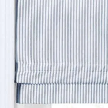 Show more Introducing the TWOPAGES Cordless Farmhouse Ticking Stripe Roman Shades, a perfect blend of style and functionality designed to elevate your home decor. Crafted with care, these custom-made shades feature a charming light blue pinstripe that encapsulates the modern farmhouse aesthetic. The classic vertical stripe pattern adds an air of sophistication and vibrancy to any room, bringing a refreshing touch of nature and elegance to your windows amid the busy urban landscape. Measuring accurately for your windows is easy—whether you opt for inside or outside mounting, our shades come with comprehensive installation guides to ensure a seamless fit.