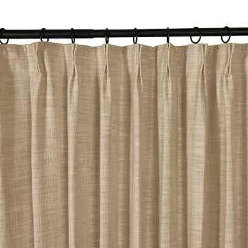 Show moreTransform your living spaces with the elegant and versatile TWOPAGES Pinch Pleated Drape, designed to elevate both style and functionality in your home. Crafted from a premium linen blend of 10% linen and 90% polyester, this drapery panel showcases a beautiful natural texture that integrates seamlessly with any decor style. Weighing just approximately 1.55 pounds, its lightweight design allows for effortless handling while ensuring a chic draping effect that catches the eye. Available in a customizable size, the panel measures 26 inches in width and 63 inches in length, making it a perfect fit for a variety of window sizes. The pinch pleat design adds a touch of luxury with its permanently sewn-in pleats, making it ideal for creating a tailored appearance. Although pin hooks are included for height adjustment, please note that drapery rod rings are not provided.
