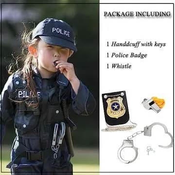 TXSN Police Costume Accessories Set, Police Accessories Metal Handcuffs, Police Bage and Whistle for Men Women Boys Girls