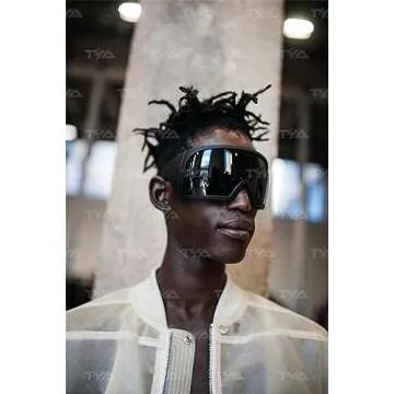 Show moreUnleash your inner futurist with the latest Bug-like shield sunglasses from TYA. This stunning pair of oversized sunglasses combines functionality with modern flair, ensuring you not only protect your eyes but also make a bold fashion statement. Crafted from high-quality glossy black nylon and featuring a formidable single 270-degree curved lens, these sunglasses are designed to wrap around your eyes in all directions for maximum coverage and style.