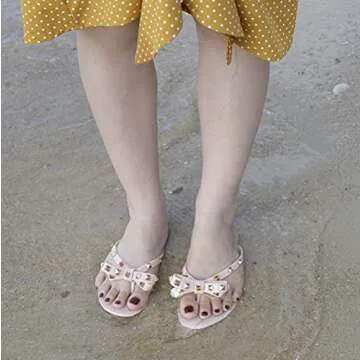 Show moreStep into a world of fashion and comfort with TYFLOVE's stunning studded Jelly flip-flops. These sandals encapsulate chic elegance, featuring a classic design that boasts a delightful bow embellished with approximately 34 metallic rivets. The unique anti-slide design ensures stability, making them a perfect companion for various occasions.