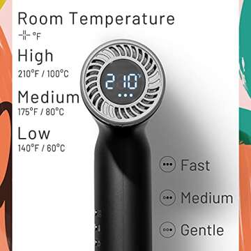 Featuring a user-friendly LCD display, the TYMO Hair Dryer allows you to customize your styling with precision. It comes equipped with 4 heat settings (room temperature, 140℉, 175℉, 210℉) and 3 speed options (fast, medium, gentle), plus a cold shot function to set your style. Thanks to its intelligent memory feature, it automatically remembers your preferred settings, so you can spend less time fiddling with controls and more time making your hair look fabulous.