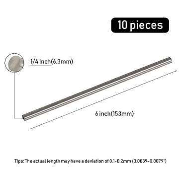 Show more Introducing the Tynulox 10Pcs 304 Stainless Steel Round Rod, a must-have for industry professionals and DIY enthusiasts alike! These high-quality metal solid shaft rods measure 1/4" (6.3mm) in diameter and 6" (153mm) in length, offering a perfect blend of strength and versatility. Crafted from durable stainless steel, these rods boast a shiny surface without cracks, ensuring reliability and longevity in every application. Whether you’re milling, crafting, or repairing, these rods meet your needs meticulously.