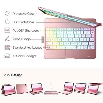 Typecase for 11 Pro Case with Wireless Keyboard: 360° Rotatable & RGB Backlight in Rose Gold