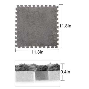 Typutomi 10pcs Plush Puzzle Foam Floor Mat, Soft Fluffy Interlocking Square Foam Tiles Area Rugs Carpet for Parlor Bedroom Decoration(11.8x11.8in, White & Apricot)