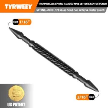 Show more This exceptional Dual-Head Nail Set & Center Punch is the ultimate addition to your toolkit, offering unparalleled functionality for both professionals and DIY enthusiasts alike. Crafted with precision, this set includes a dual-head design featuring a head size of 1/16 inch and 3/16 inch, making it incredibly versatile for a multitude of tasks. The tools boast a total length of 5-1/2 inches, making them perfect for tight spaces where traditional tools cannot fit.