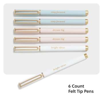 U Brands Catalina Felt Tip Pens, Set of 6, Classic Pretty Pastels with Gold Details, Medium (0.7 mm) Point, Black Ink