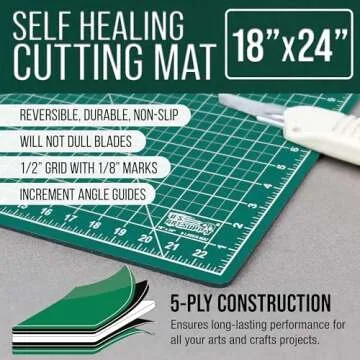 U.S. Art Supply 18" x 24" Green/Black Professional Self Healing 5-Ply Double Sided Durable Non-Slip Cutting Mat Great for Scrapbooking, Quilting, Sewing and all Arts & Crafts Projects
