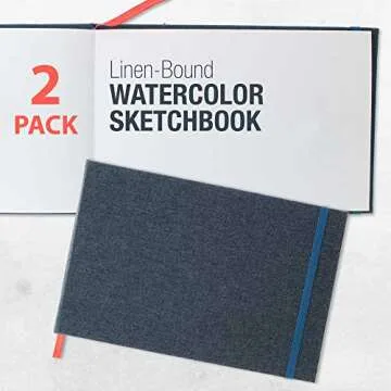 U.S. Art Supply 5.5" x 8.5" Watercolor Book, 2 Pack, 76 Sheets, 110 lb (230 GSM) - Linen-Bound Hardcover Artists Paper Pads - Acid-Free, Cold-Pressed, Brush Painting & Drawing Sketchbook Mixed Media