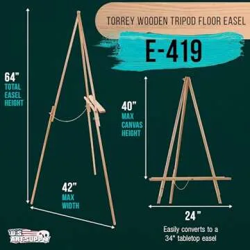 U.S. Art Supply 64" Wooden Easel Stand Tripod - Adjustable A-Frame Display for Painting, Drawing, Canvas, Photos & Signs - Lightweight Pinewood Studio Easel with Adjustable Tray & 40" Canvas Capacity