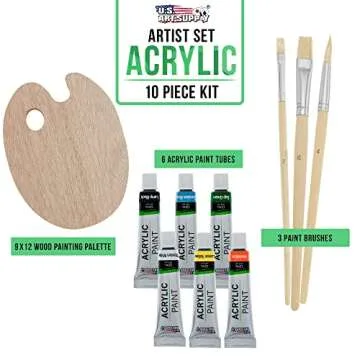 U.S. Art Supply Artist Wood Painting Palette with 6-Piece Acrylic Paint Tube Set & 3-Piece Brush Set