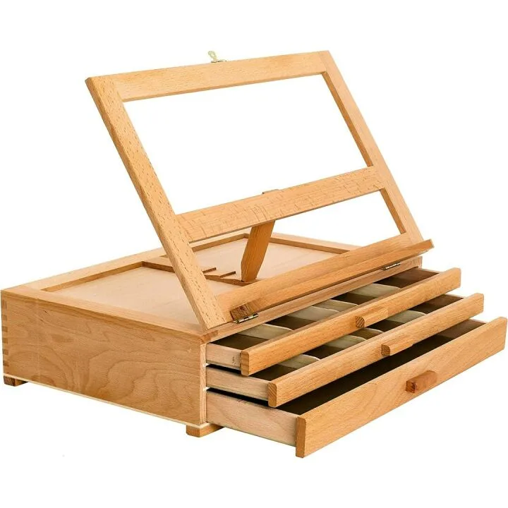 Show moreIntroducing the intelligently designed compact portable 3 drawer desktop storage box that easily converts into a painting easel. Crafted from high-quality aged Beechwood grown in Germany, this natural wood-colored easel box is meticulously hand sanded and oil finished for a premium look and feel. Perfect for artists of all levels, from kids and beginners to advanced artists and professionals, this lightweight yet sturdy tabletop box easel is an essential addition to your art supplies.