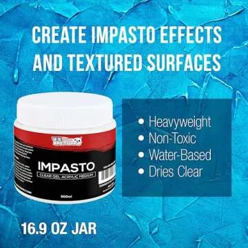 Show more Elevate your artistic creations with the Premium Impasto Acrylic Gel Medium, a staple for artists who demand quality and versatility. This exceptional gel is designed to transform your artwork, providing dramatic impasto effects that are sure to impress. Whether you're looking to enhance the texture in your paintings or add depth to mixed media projects, this 500ml tub is an essential tool in your creative arsenal.