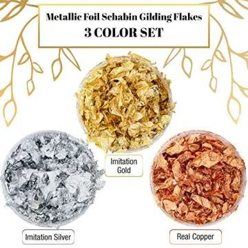 U.S. Art Supply Metallic Foil Schabin Gilding Metal Leaf Flakes 30 Gram Kit - Set of 3 Colors Imitation Gold and Silver, Copper in 10 Gram Bottles - Epoxy Resin Nail Crafts Painting Jewelry Slime