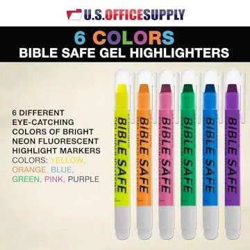 Show more Discover the magic of vibrant expression with the Bible Safe Gel Highlighters, expertly crafted for those who cherish the written word. This set comprises six stunning colors - yellow, pink, purple, blue, green, and orange - each designed to breathe new life into your studies. Whether you’re highlighting biblical verses, important notes, or personal reflections, these highlighters glide across the page with unparalleled ease.