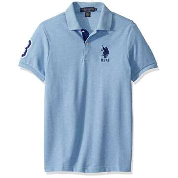 Show moreStep into the world of classic American style with the U.S. Polo Assn. Men's Short-Sleeve Polo Shirt. Crafted with attention to detail, this polo shirt in Surf Blue Heather brings a vibrant splash of color to your wardrobe while maintaining a sleek and sophisticated look. The high-quality fabric ensures a soft touch against your skin while providing lasting durability. With rib knit collar and cuffs, the shirt promises a polished appearance whether you're on the greens, at the beach, or enjoying a casual outing with friends.