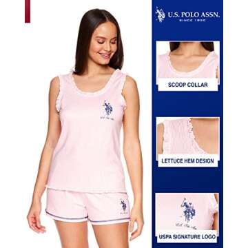 U.S. Polo Assn. Summer Pajamas for Women - USPA Logo Pajamas with Ruffled Tank Top and PJ Shorts (Coral Heather, Large)