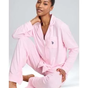 U.S. Polo Assn. Women's Pajama Sets - Long Sleeve Sleepwear Lounge Set (Ballerina, Medium)