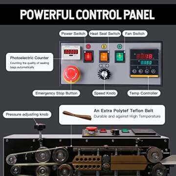 U.S. SOLID Continuous Bag Band Sealer Sealing Machine, Automatic Horizontal Band Sealer with Digital Temperature Control for 0.02-0.08mm PVC Bags Films Stamp Coding 110V/60HZ