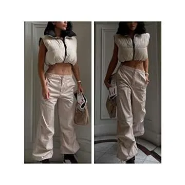 UANEO Cropped Puffer Vest Women Zip Up Stand Collar Sleeveless Padded Crop Puffy Vests (#2Beige-M)