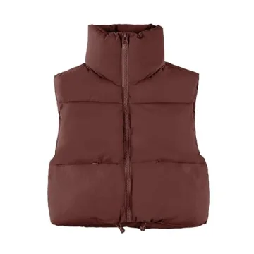 UANEO Cropped Puffer Vest Women Zip Up Stand Collar Sleeveless Padded Crop Puffy Vests (Brown-S)