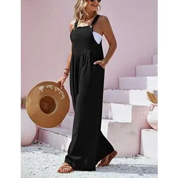 UANEO Overalls for Women Loose Fit Summer Wide Leg Jumpsuits Floral Boho Clothes (#2Black-L)