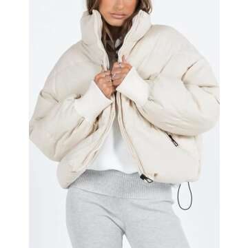 UANEO Puffer Jacket Womens Oversized Cropped Puffy Quilted Winter Jackets Coat (Beige-S)