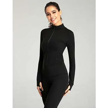 UANEO Workout Tops for Women Cropped Workout Jackets for Women Yoga Athletic Jacket (Black-S)