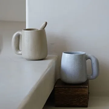 Uaral Large Coffee Mugs,Stoneware Pottery Coffee Mug Set with jumbo handle,Handmade mugs for Latte,Milk,Cocoa or Tea,20oz,Set of 2, (Assorted Color Cream&Gray)