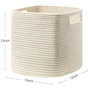 UBBCARE Set of 3 Cotton Rope Basket 13 X 13 X 13 Inches, Woven Storage Baskets for Shelves, Organizing with Handles, Cube Storage Bins for Storage Books, Magazines, Beige