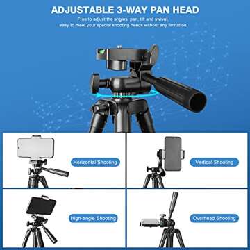 Show more If you're looking for a reliable companion for your photography adventures, the Ubeesize 50” Tripod is the perfect choice. This versatile tripod features a 3-Way Pan Head that offers complete control with separate knobs for headlock, pan lock, and tilt lock. With its quick-release plate and built-in bubble level, achieving superb stability for both stills and video recording has never been easier. Whether you're capturing breathtaking portrait shots or panoramic landscapes, this tripod ensures smooth and precise results.
