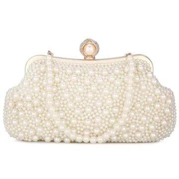 UBORSE Elegant Pearl Clutch Bag with Detachable Chains in Ivory White