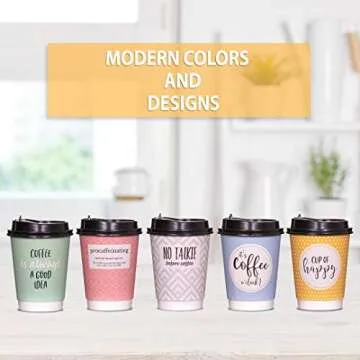 UBREW Disposable Coffee Cups With Lids - (Double Wall) 12 oz Coffee Cups To Go (50 pack) Paper Coffee Cups With Lids 5 Quotes and Designs | Recyclable Eco-Friendly| Hot Coffee Cups with Lids