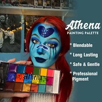 Show more Unleash your artistic expression with the UCANBE Athena Face and Body Painting Kit, featuring an impressive array of 20 vibrant colors housed in a generous large deep pan. This professional-grade makeup kit comes equipped with two high-quality brushes and 24 diverse stencils, ensuring you have everything you need to create stunning designs for any occasion. Designed for both beginners and seasoned artists alike, this face and body paint provides a thick, creamy texture that glides smoothly across the skin, allowing for flawless coverage and limitless artistic possibilities.