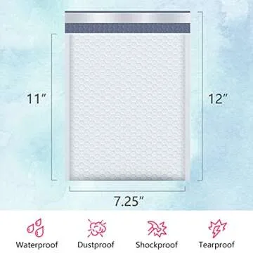 Show more Experience the exceptional quality and design of the UCGOU Opaque Poly Bubble Mailers, the ultimate solution for your shipping needs. This product combines functionality and style, making it a standout choice for small to medium businesses. Each mailer boasts an outer size of 7.25x12 inches, with an inner size of 7.25x11 inches, ensuring ample space for your valuable items. The full air bubbles provide enhanced protection against external impacts, allowing your products to arrive safely and intact. Not only does the gray inner lining block visibility, even under bright light, it also ensures the confidentiality of your shipments.